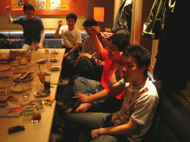 ・・・・・・で、皆一斉に、飲み物を補給しに行ったりするもんだから、一瞬BOXの中は、こんなある意味シュールな光景になったりも(苦笑)。