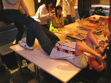 電気アンマをテーブルの上でやれば、勢いあまってコケてしまったり。